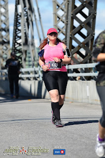 I barely slept Saturday night, I was so wound up about the race. Again, not so much the running part, but whether I would remember everything I needed, and would I find my way about, and basically all the logistical stuff that was not the actual putting one foot in front of the other part. I finally got up before the alarm went off. It was just after 5 am. I proceeded to try and prepare my body for the event, mainly my feet. My baby toes have had recurring blisters pretty much every week for last few weeks after my long run. I hesitate to say they actually healed between runs, because I don't think they did. So I knew they were likely to be my Achilles heal. I did my best to protect them, and I was in great spirits and feeling very determined when I headed off to the race area at 7 am.